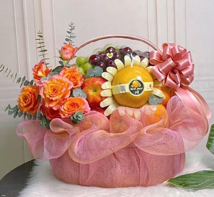 Điểm nổi bật của Giỏ Trái Cây Thịnh Vượng là cách thiết kế tinh tế và hài hòa. Trái cây được sắp xếp đẹp mắt trong giỏ mây hoặc hộp quà sang trọng, kết hợp cùng nơ trang trí nổi bật, mang đến cảm giác trang nhã và lịch sự. Nhờ vậy, giỏ quà không chỉ mang giá trị dinh dưỡng mà còn thể hiện sự trân trọng và thành ý của người tặng.
