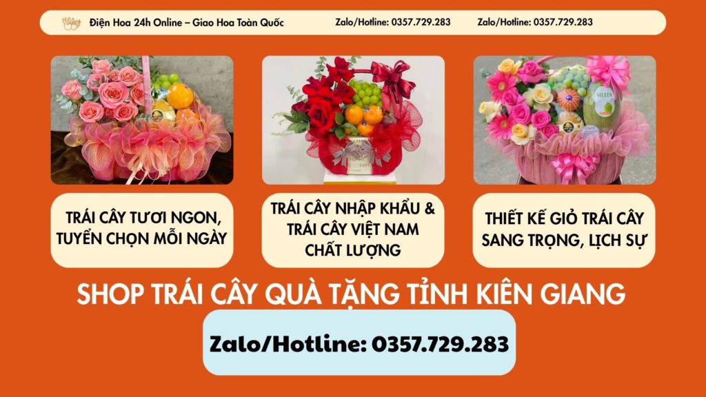 Shop trái cây quà tặng Tỉnh Kiên Giang là địa chỉ cung cấp các mẫu giỏ trái cây cao cấp, đáp ứng nhu cầu biếu tặng ngày càng tăng tại khu vực miền Tây Nam Bộ. Với sự hỗ trợ từ Điện Hoa 24h Online – Giao Hoa Toàn Quốc – Hotline: 0357 729 283, khách hàng có thể đặt giỏ trái cây nhanh chóng và nhận hàng tận nơi.