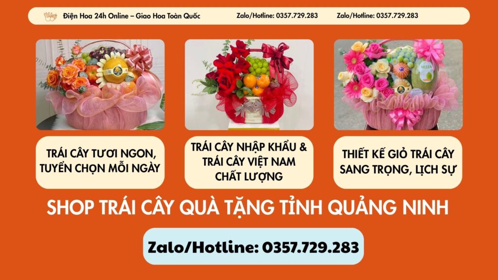 Shop trái cây quà tặng Tỉnh Quảng Ninh là địa chỉ uy tín chuyên cung cấp các loại giỏ trái cây đẹp, chất lượng cao và phù hợp với nhiều nhu cầu tặng quà. Với sự hỗ trợ từ Điện Hoa 24h Online – Giao Hoa Toàn Quốc – Hotline: 0357 729 283, khách hàng có thể dễ dàng đặt hàng và nhận sản phẩm nhanh chóng tại Quảng Ninh.